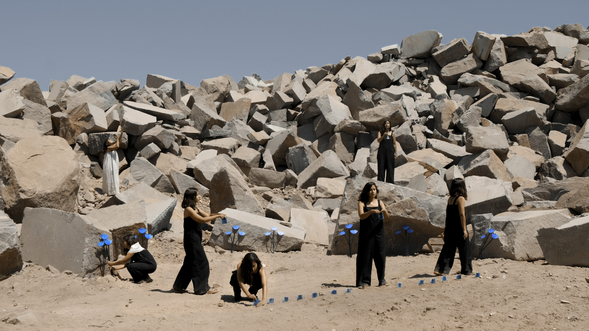 A Broken Circle of Sister unfolds in three acts. The first act addresses the extraction of statues from their original contexts in Egypt and their displacement to Italy. The second act takes the form of a ritual performed at the Museo Egizio, making and activating twenty-one cyanotype prints representing the twenty-one statues held at the museum. The ritual is inspired by the ancient Egyptian Opening of the Mouth ritual, where I attempt to imprint the statues’ divinity onto their paper form at the Museo Egizio so that the prints may act on behalf of the stones. The last act is a funerary procession returning these activated prints to Egypt, where I bury them at the statues’ birthplace in Aswan’s ancient quarries. Through this journey, they lament their failure to protect the king as their circle of protection lies broken due to their forced displacement.