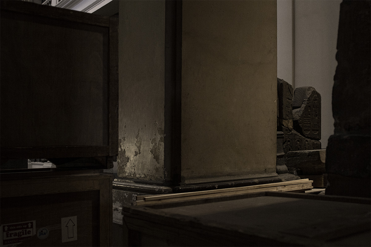 IntroductionWith this work-in-progress series, I am constructing a photographic docu-fiction reimagining the portrayal of an ancient Egyptian artefact. The docu-fiction follows the turmoils of an artefact as she waits to be removed from the Egyptian Museum in Cairo. Her despair is juxtaposed with photographs taken of the museum over the past seven years, documenting the removal of exhibits, the empty places they left behind, and the transformation of what was once a familiar place into a barren foreign land.